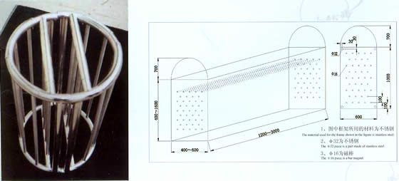 發(fā)電廠的汽輪機、軋鋼廠以及各油站、油箱中使用的透平油,首先由過濾油網(wǎng)將大于10微米的雜質(zhì)清除了,但還有一些小于10微米的鐵磁性物質(zhì),這些細小的鐵磁性物質(zhì)可以穿透多層濾油網(wǎng)進入軸承和調(diào)節(jié)系統(tǒng),使軸承磨損,調(diào)節(jié)系統(tǒng)卡澀,很容易造成軸承損壞和汽輪機飛車事故。這些細小的鐵磁性物質(zhì)用壓力式濾油機是無法濾清的。 我公司生產(chǎn)的濾油磁棒,可以將汽輪機透平油中的這些細小的鐵磁性物質(zhì)(小于10微米)吸縛在磁棒上,只需定期清理磁棒可使透平油清潔,保證汽輪機和各類軸承正常運轉(zhuǎn)。 濾油磁棒是用高磁棒場強永磁鐵制成,外套不銹鋼套管。該濾油磁棒場強在3000~5000高斯,磁場方向在徑向(或短軸方向)。濾油磁棒為圓截面,圓截面磁棒直徑φ16~φ200mm,長度可根據(jù)油箱尺寸由用戶選定,在使用溫度不大于130℃及不受劇烈沖擊的條件下,使用壽命10年. 過濾油磁棒、柵安裝與維護 1、根據(jù)汽輪機主軸箱及各油站的尺寸,用金屬材料制一框架,(最好使用不銹鋼),在框架的一對稱邊用卡子固定濾油磁棒,磁棒間隙80mm~100mm,磁場方向在框架的平面內(nèi),根據(jù)框架尺寸在油箱點焊框架滑道,可使框架從油箱內(nèi)方便提出,汽輪機油箱內(nèi)可裝多排磁棒,相鄰兩排磁棒,要互相錯開排列,安裝的排數(shù)與油箱的大小和油內(nèi)所含雜質(zhì)多少有關(guān),應(yīng)以最后一排磁棒上基本無雜質(zhì)為準。 2、維護:油箱內(nèi)安裝好濾油磁棒后,一般不會再有檢修工作,每十天到十五天可將框架整體取出用干凈布擦干凈,再重新放入油箱中使用,如油箱中的油很干凈可相應(yīng)延長清理時間。